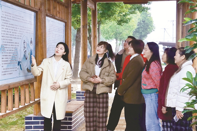 湖北省当阳市纪委监委将清廉家风建设与廉洁文化建设深度融合,打造家风教育基地,组织党员干部群众聆听家风故事,引导其自觉传承清廉家风,筑牢廉洁防线。图为党员干部及群众在该市河溶镇建国村清廉家训长廊参观学习。秦宇聪 摄