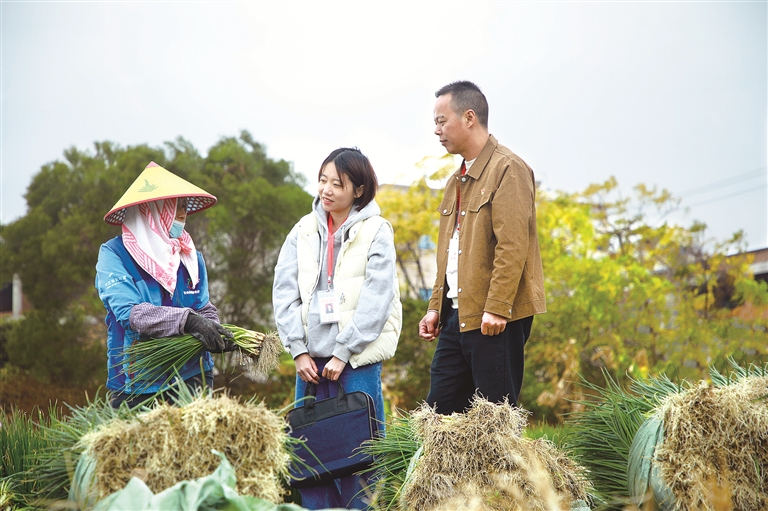 福建省厦门市翔安区纪委监委将推进乡村全面振兴作为监督重点,聚焦产业项目实施、惠民政策落实、资金管理使用等关键环节,组织纪检监察干部深入田间地头、产业园区,查找在责任落实、政策执行、工作作风中存在的问题。图为近日,该区纪检监察干部在新圩镇青葱种植基地走访了解有关情况。陈刘宁 摄