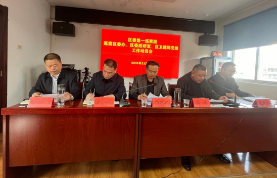 根据区委巡察工作领导小组统一部署,2025年11月5日下午,七届区委第十一轮巡察第一巡察组巡察区委办、区委政研室和区卫健局党组织工作动员会召开。区委第一巡察组组长高兵作动员讲话,通报了巡察监督重点、总体安排和要求等;区委巡察工作领导小组成员、区纪委副书记、区监委副主任李建有就如何做好巡察工作强调了几点意见;区委政研室主任朱文杰主持会议,区卫健局党组书记、局长郭云就配合做好巡察工作作表态发言。