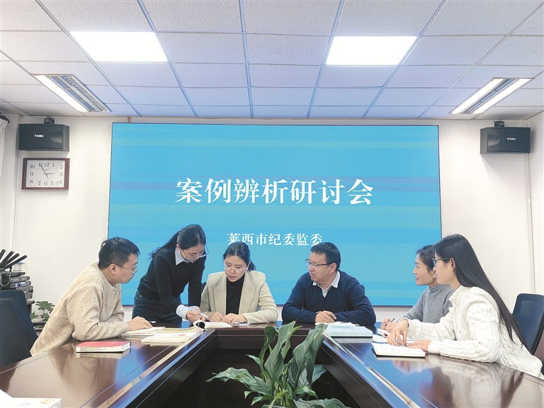 山东省莱西市纪委监委将“乡案县审”作为提升基层案件质量的重要抓手,坚持建强机制、规范流程、强化培训共同发力,推动基层案件查办工作提质增效。图为近日,该市纪委监委组织开展案例辨析研讨会。刘涛 摄